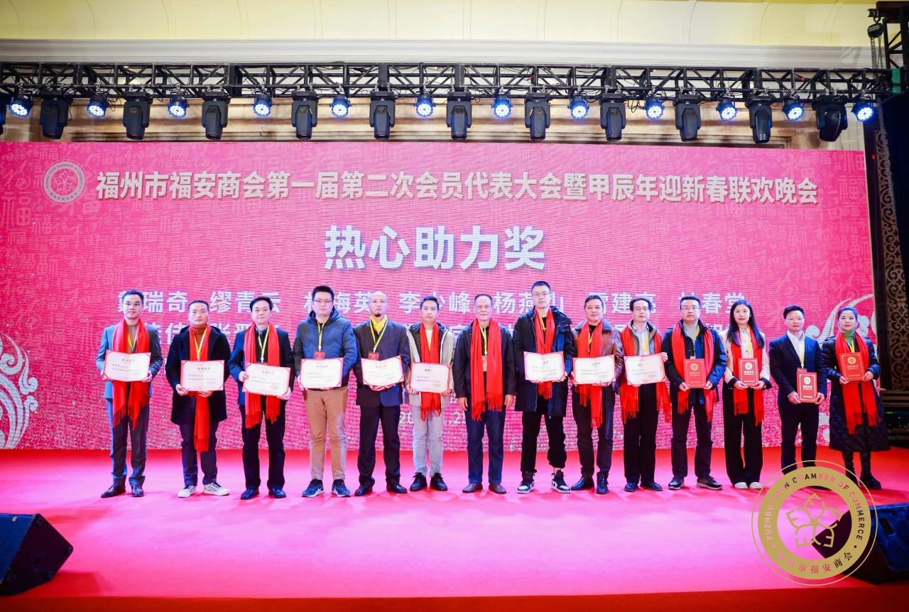 2024年1月25日,福州市福安商会第一届第二次会员代表大会暨甲辰年迎新春联欢晚会在福州悦华酒店举行。福建省政协原副主席陈绍军、省委原副秘书长兼办公厅主任李育兴、省人大内司委原主任詹毅、省广电局原局长陈必滔等老领导,福州市工商联副主席陈曦,福安市委常委、统战部部长缪碧华,福安市政府党组成员、副市长连坚等领导到会致辞并授牌。福州市福安商会会长王少荣,名誉会长、兴华财富集团董事长陈茂春在大会上致辞。