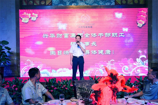 祝福满溢的宴会厅,陈董事长发表生日感言:感谢全体员工一直以来手足般的精诚合作、兢兢业业的工作与付出!希望兴华每一位干部职工在以后的道路上能够工作顺利,家庭幸福,也希望大家能够共同努力,实现兴华大家庭的美满与幸福。