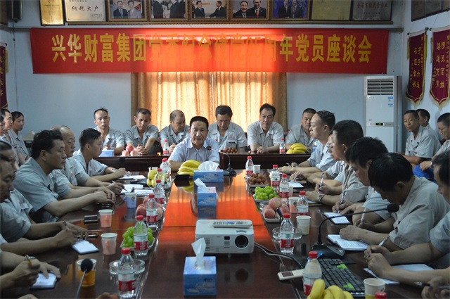 6月30日下午兴华财富集团党委在公司会议室隆重召开纪念建党95周年座谈会。集团公司党委书记、董事长陈茂春,总经理付新岗、行政副总高振伟、党委副书记钟春华出席此次会议。各支部全体党员整装一新、精神抖擞参加会议,大家欢聚一堂,共同庆祝中国共产党成立95周年。