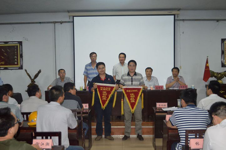 会上,公司领导为7月份四项工作评比先进单位轧钢厂和财务部颁发流动红旗。