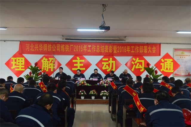 2016年1月3日上午炼铁厂2015年总结表彰暨2016年工作部署大会在公司专家楼三楼会议室隆重召开,公司生产副总付新岗、炼铁厂长林春进、生产副厂长李兴旺、设备副厂王彦杰及各车间、科室领导、获奖的全体人员参加此次会议。会议由生产副厂长李兴旺主持。